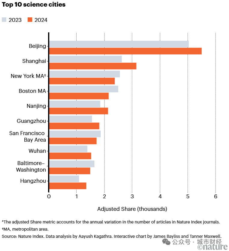 南京科研实力位居全国第三、全球第五。2025年,全球顶级学术出版机构施普林格·自然发布的《自然》增刊“自然指数—科研城市”显示,2024年全球十大科研城市依次为:北京、上海、纽约都市圈、波士顿都市圈、南京、广州、旧金山湾区、武汉、巴尔的摩—华盛顿、杭州。