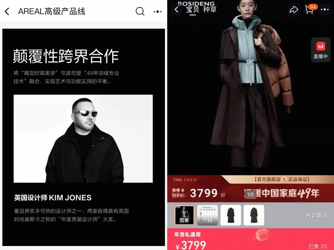 去年,大力推进高端化的波司登,直接邀请Dior男装艺术总监Kim Jones担任品牌AREAL高级都市线创意总监。Kim Jones此前曾联手Dior打造Jordan Air Jordan 1 High OG,该鞋款以18000元的定价刷新了AJ系列的价格纪录。