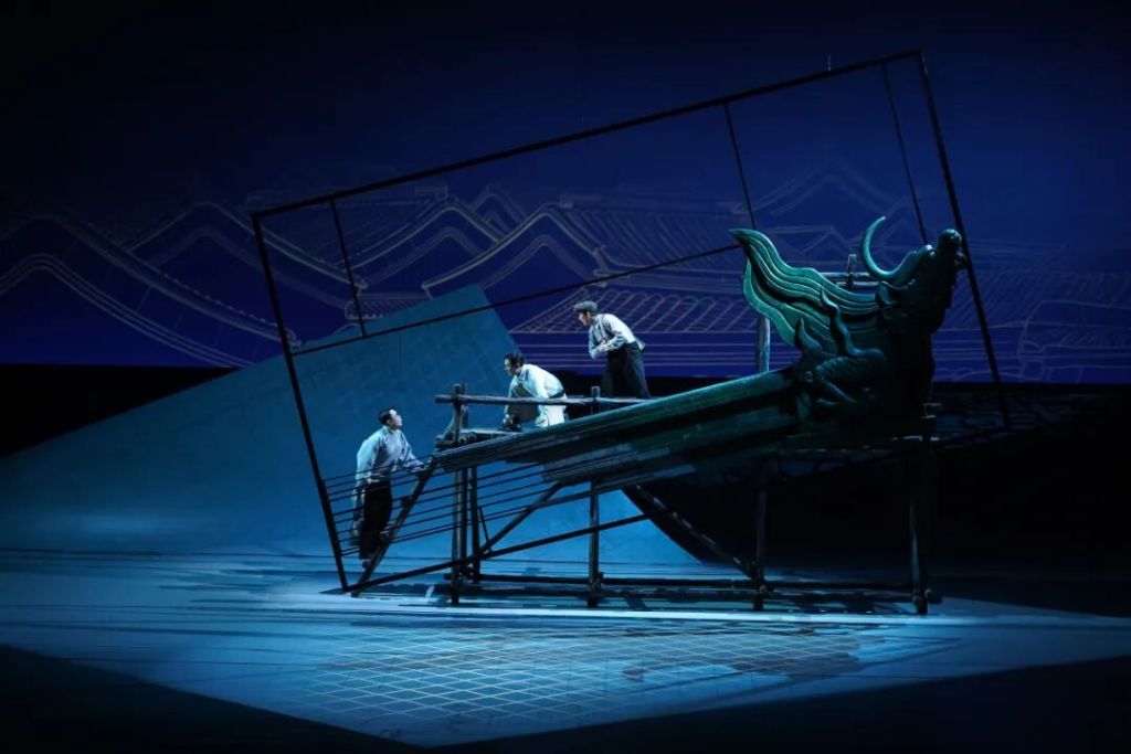 灯光设计刘钊通过冷暖色调的精准调控,构建出沦陷区的压抑氛围与测绘队员理想之光的对比。作曲吕亮更将《营造法式》原文谱入旋律,在此前媒体探班现场展示的音乐小样中,三弦与鼓点勾勒京韵特色,器乐成为“隐形叙事者”,用声音构建“古今对话”的听觉场域。