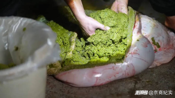 当贵州山间的火锅里,翻滚着墨绿色的牛羊胃液——