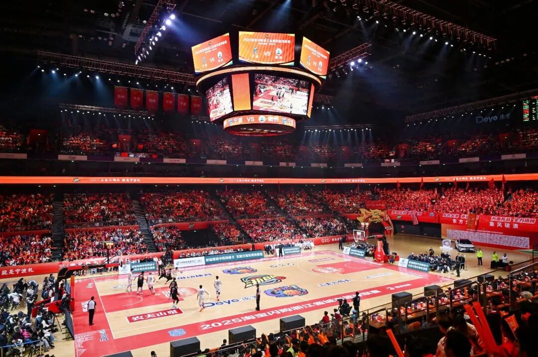 2025年11月22日,宁波队主场迎战衢州队,图为宁波市奥体中心体育馆。郭戟铠/摄