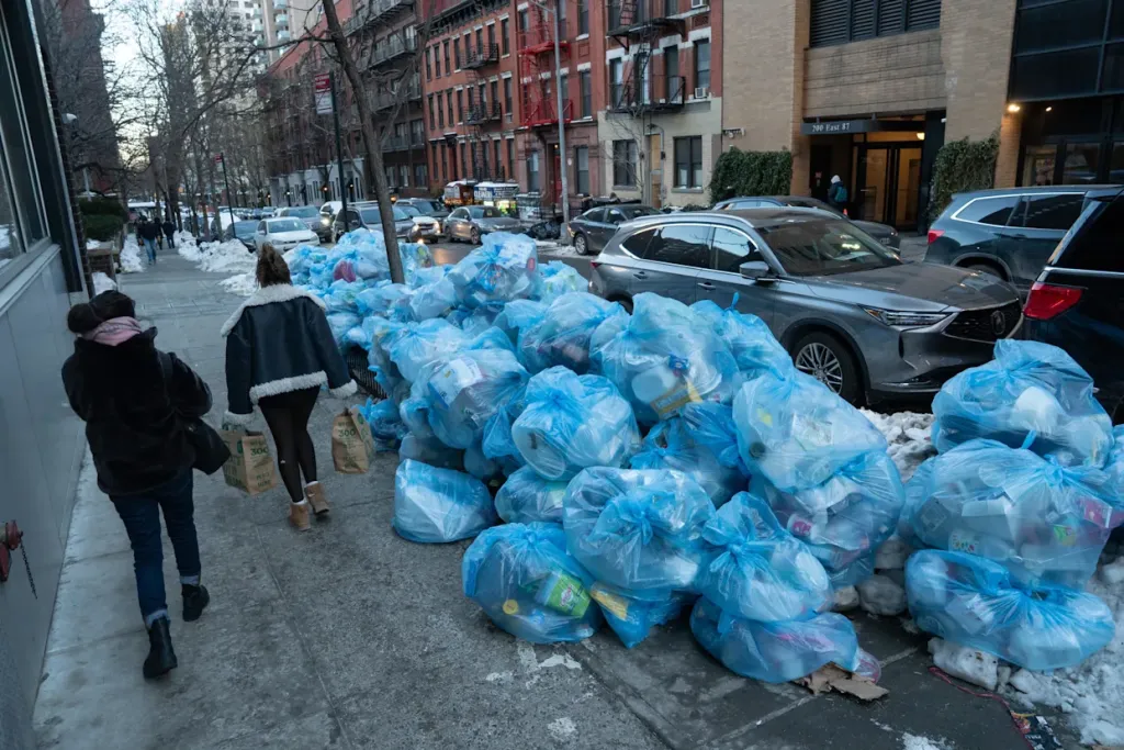与此同时,垃圾堆积问题凸显。环卫工人全力清理积雪积冰,导致垃圾回收延误,多个街区垃圾袋堆积如山,加剧城市环境压力。