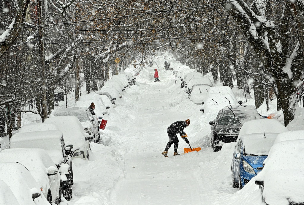 1月26日,纽约州奥尔巴尼,人们努力挖出街旁汽车。