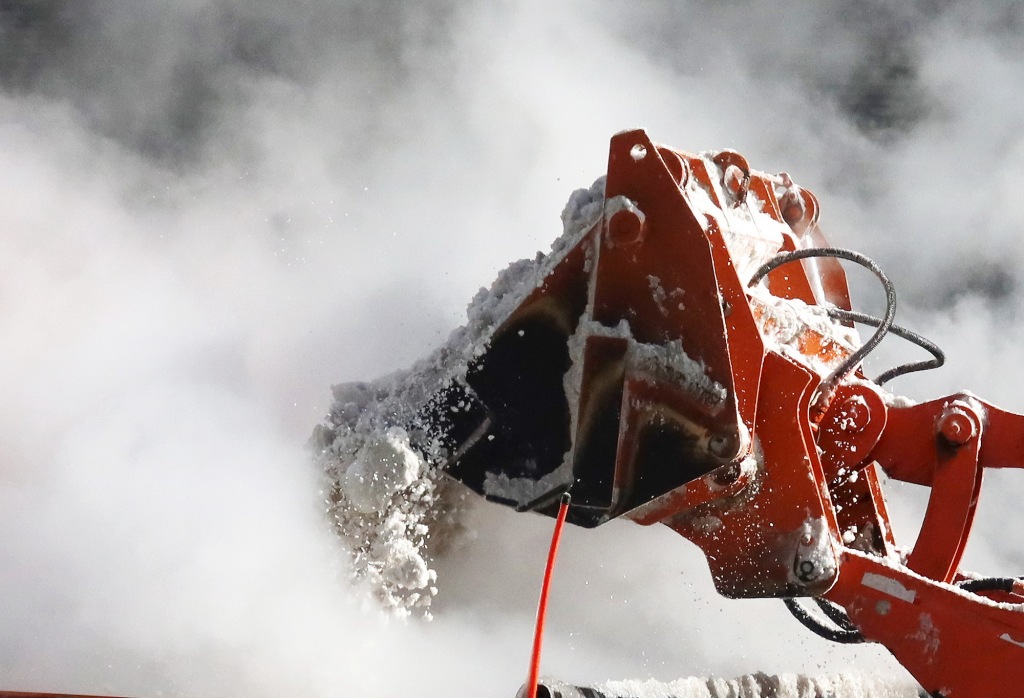 1月29日,纽约铲雪车将雪倒入橙色“融雪浴缸”。