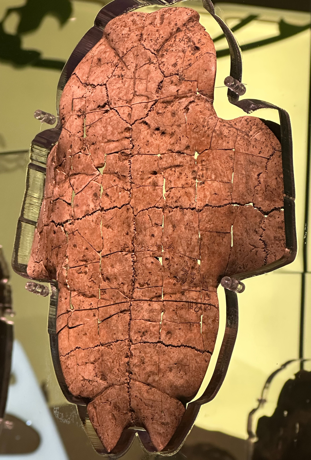 殷墟花园庄东地出土的“发以马”刻辞卜甲。安阳殷墟博物馆“花园庄东地”特展展陈