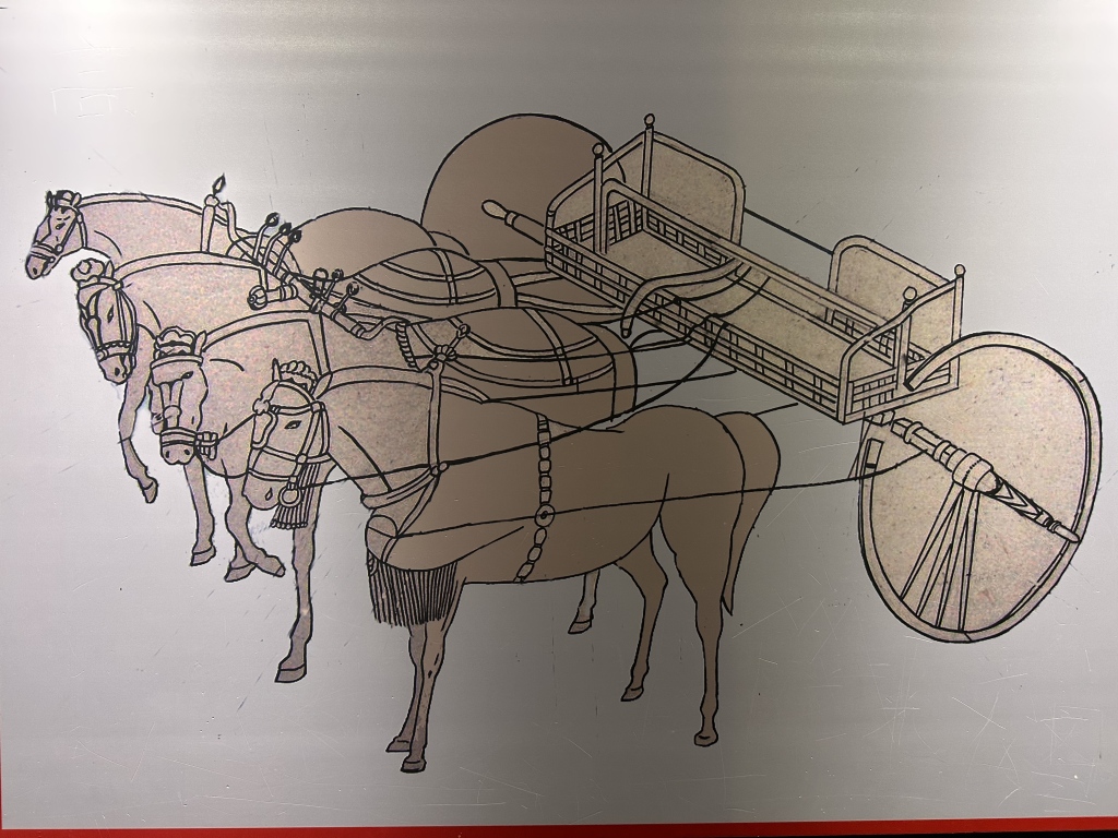 殷商时代用于战争和出行的马车示意图。殷墟王陵遗址展陈