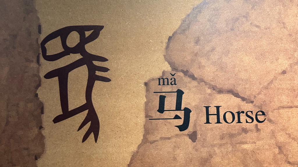 甲骨文中的“马”字。安阳中国文字博物馆展陈