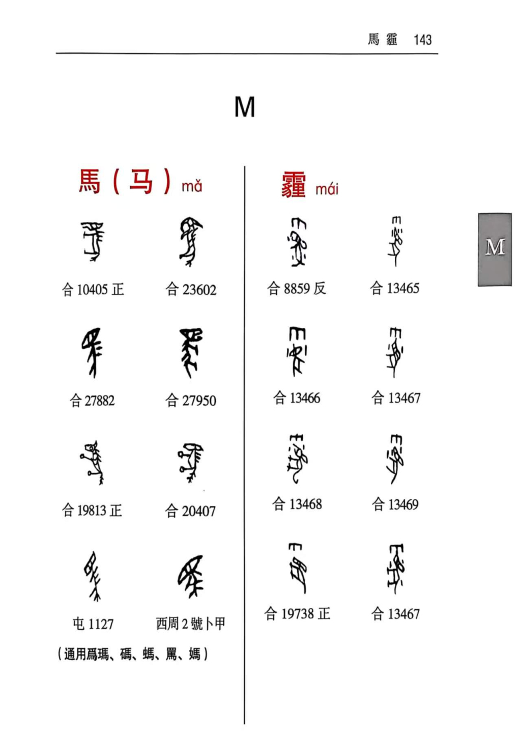 下面一组图片,可助我们找到甲片卜辞中的“马”字。