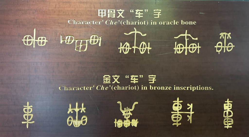 甲骨文和金文中的“车”字。殷墟王陵遗址展陈