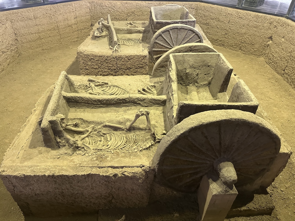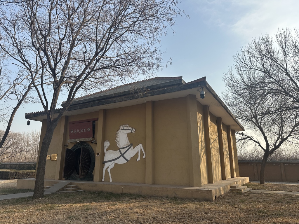 安阳殷墟博物馆还有大型车马坑展示厅,展示大量商代车马遗迹,详解辕、轴、轮、轭及套马铜构件,并以数字技术还原商代道路网络与交通情况,直观呈现殷商车马使用与社会面貌。