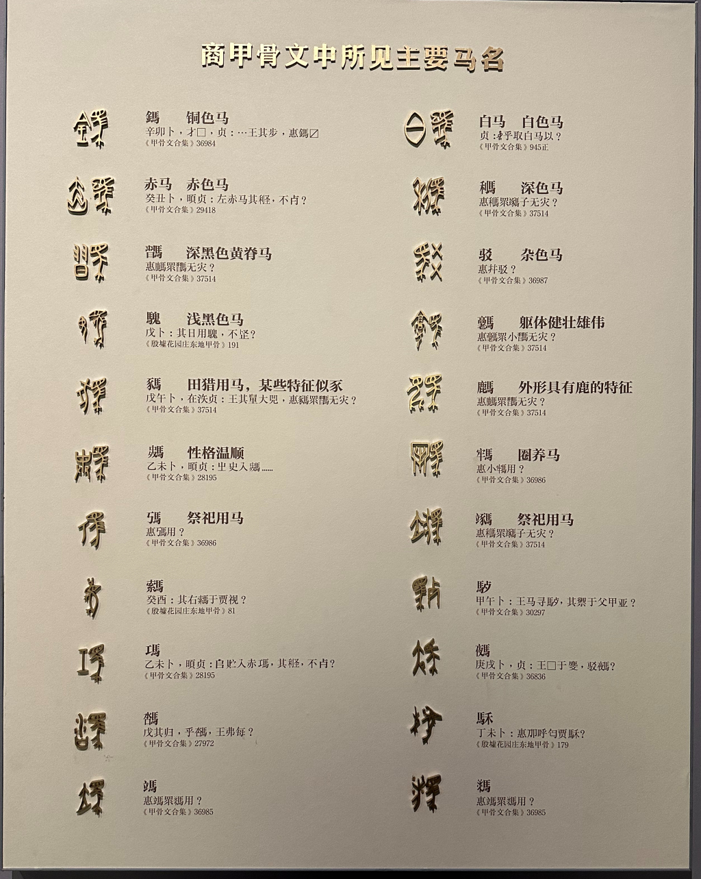 甲骨文中出现的主要马名。安阳殷墟博物馆“花园庄东地”特展展陈