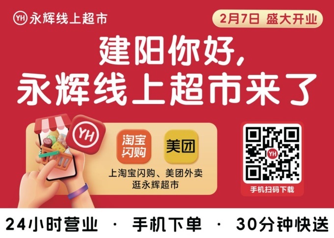 春节备货旺季来临之际,永辉线上超市宣布正式进驻南平建阳,其闽北地区首家线上门店将于2026年2月7日启动运营。