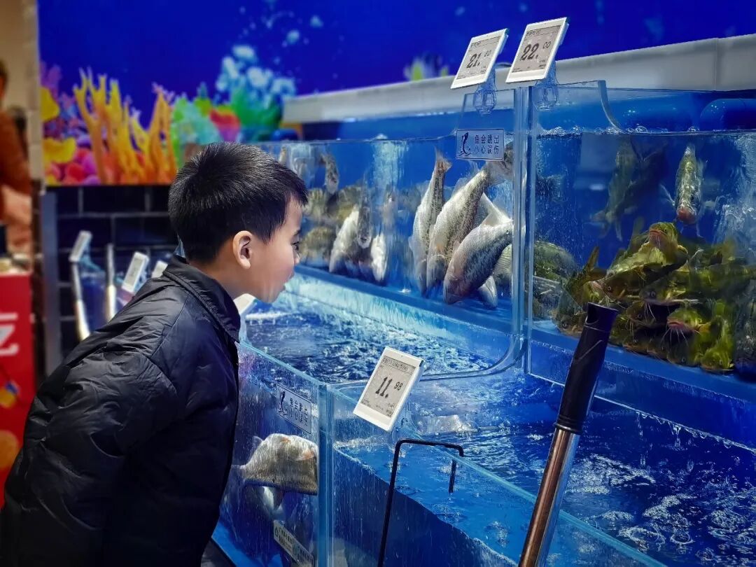 生鲜区是品质升级的核心:水产涵盖三文鱼、三去鱼、深水老黄鱼;肉品引入大师傅系列气调包装猪肉和禽类。通过高频生鲜品类的“可视化升级”,快速建立消费者信任,带动复购。