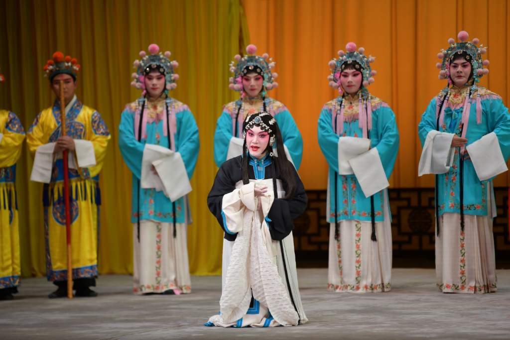 即使是满台的配角龙套也都全部反串,温柔的青衣、英气的武旦、娇俏的花旦都扮起了校尉,而豪迈的花脸、英俊的老生、帅气的武生则都扮起了宫女,一出场便收获了诸多“碰头彩”。