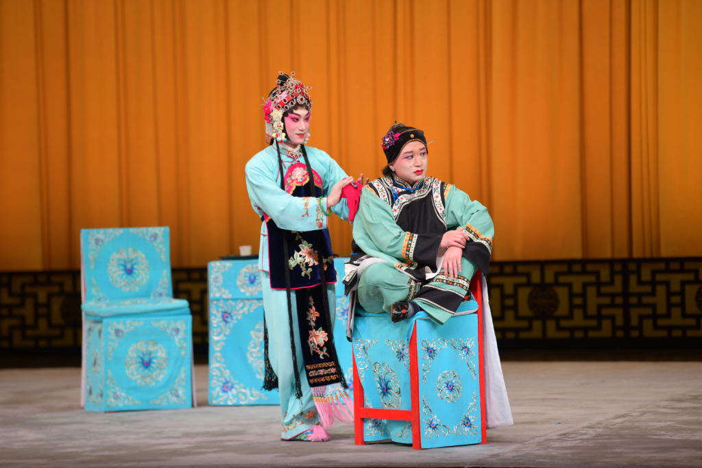 演出现场,演员们不时“现场发挥”,“花活儿”不断,“爆梗”频频。“新能源车”“师姐师弟”“武旦演老生”等台词引得全场大笑,王珮瑜饰演的“贾桂”的一段评弹更是收获了满场掌声。