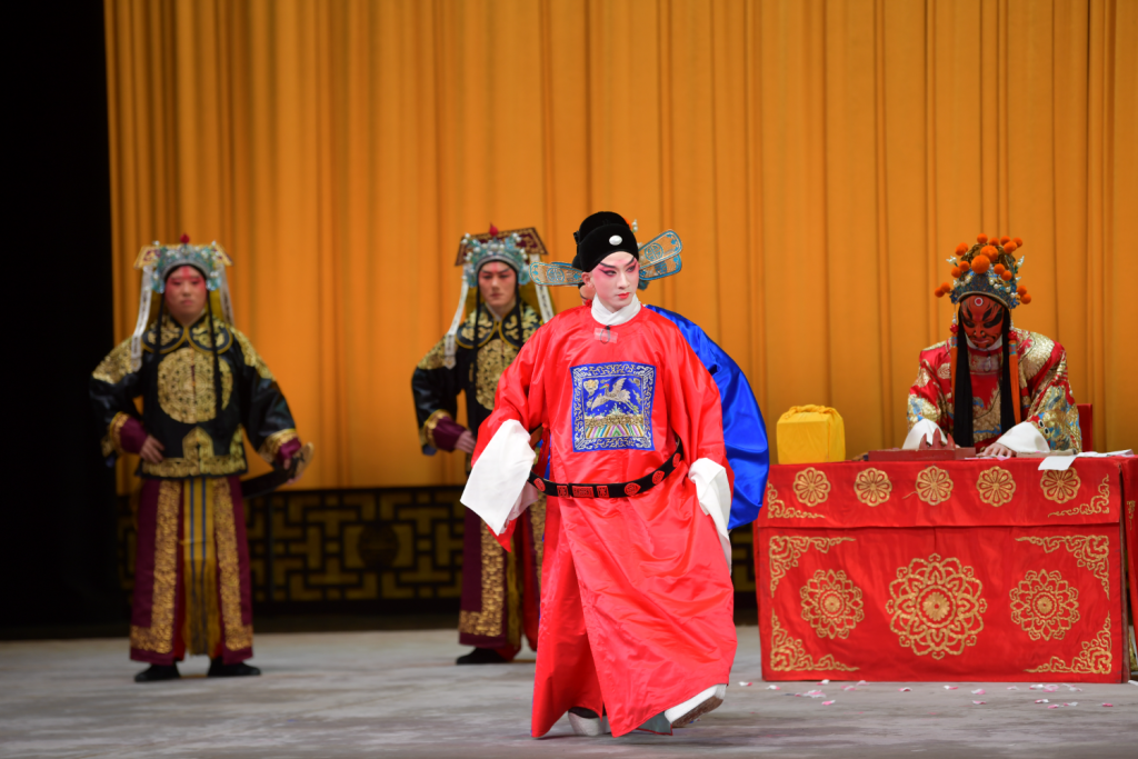 《法门寺》更是名角云集,史依弘、冯蕴、李国静几位旦角分别饰演老生赵廉;丑行严庆谷、老生蓝天则反串花脸扮演刘瑾;傅希如、陈圣杰两位老生反串青衣,扮演的宋巧娇有着繁重的唱段,两人不仅身段扮相惟妙惟肖,唱腔也相当专业。