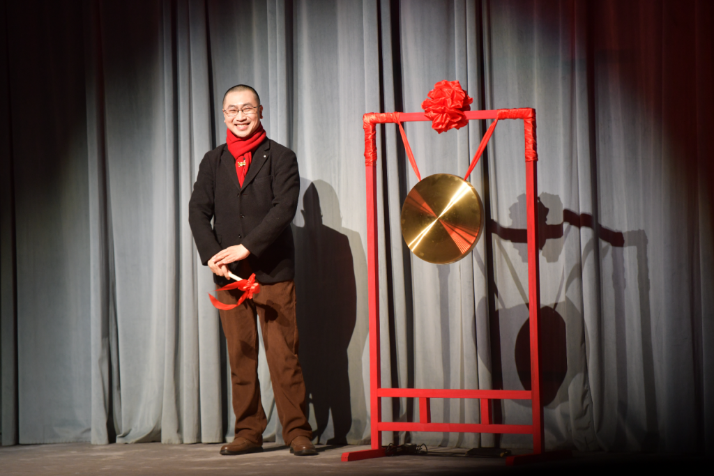上海天蟾逸夫舞台总经理潘熠文敲响戏锣启动“‘百年天蟾’系列演出”序幕