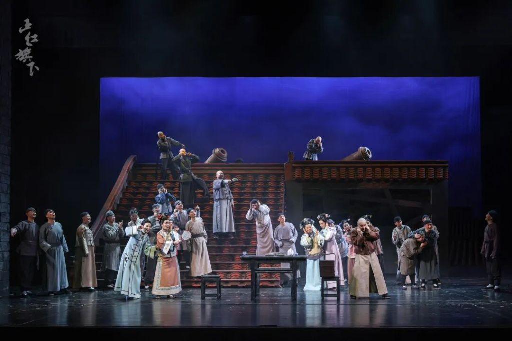 他阐释道:“它既存在又消逝,是一个时代的印记,也是时代消亡的象征。”写意的红色屋顶既还原古都风貌神韵,又为演员提供自由穿梭的时空,实现时空的分割与串联,兼具写实与写意之美。创作团队还借鉴中国传统戏曲样式,结合舞蹈展现八旗宏大场面,让观众在磅礴想象中感受时代洪流下的个体命运浮沉。