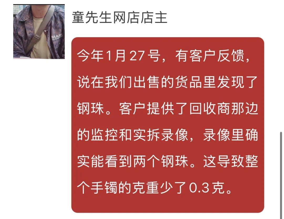 黄金手镯断裂惊现钢珠,商家紧急召回损失惨重