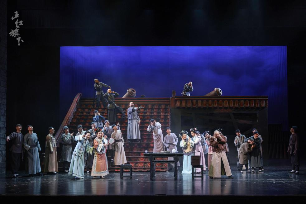 这一创作理念在舞台视觉呈现上得到了凝练的表达:以“红色屋顶”作为核心意象与支撑点,不仅还原了古都北京的风貌,还构建出一个能让观众“登高望远”的历史观察视角。
