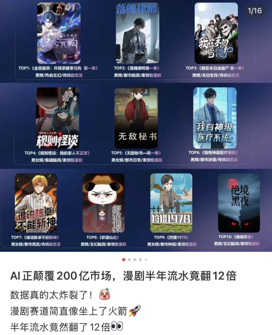 另一条分流路径指向漫剧,尤其是AI漫剧。