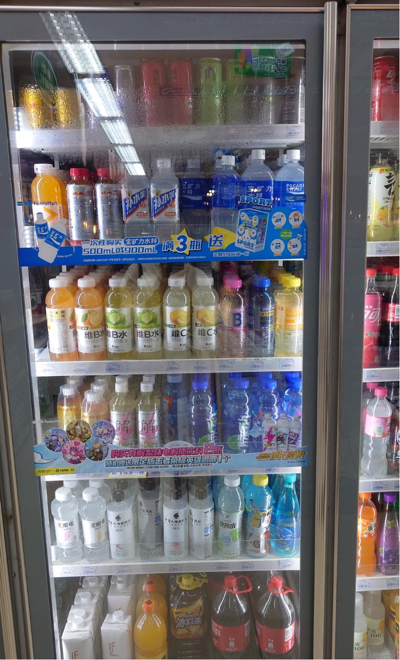 2025年8月广州某便利店内,与宝矿力水特在冰柜同一位置的补水啦。图/受访者提供