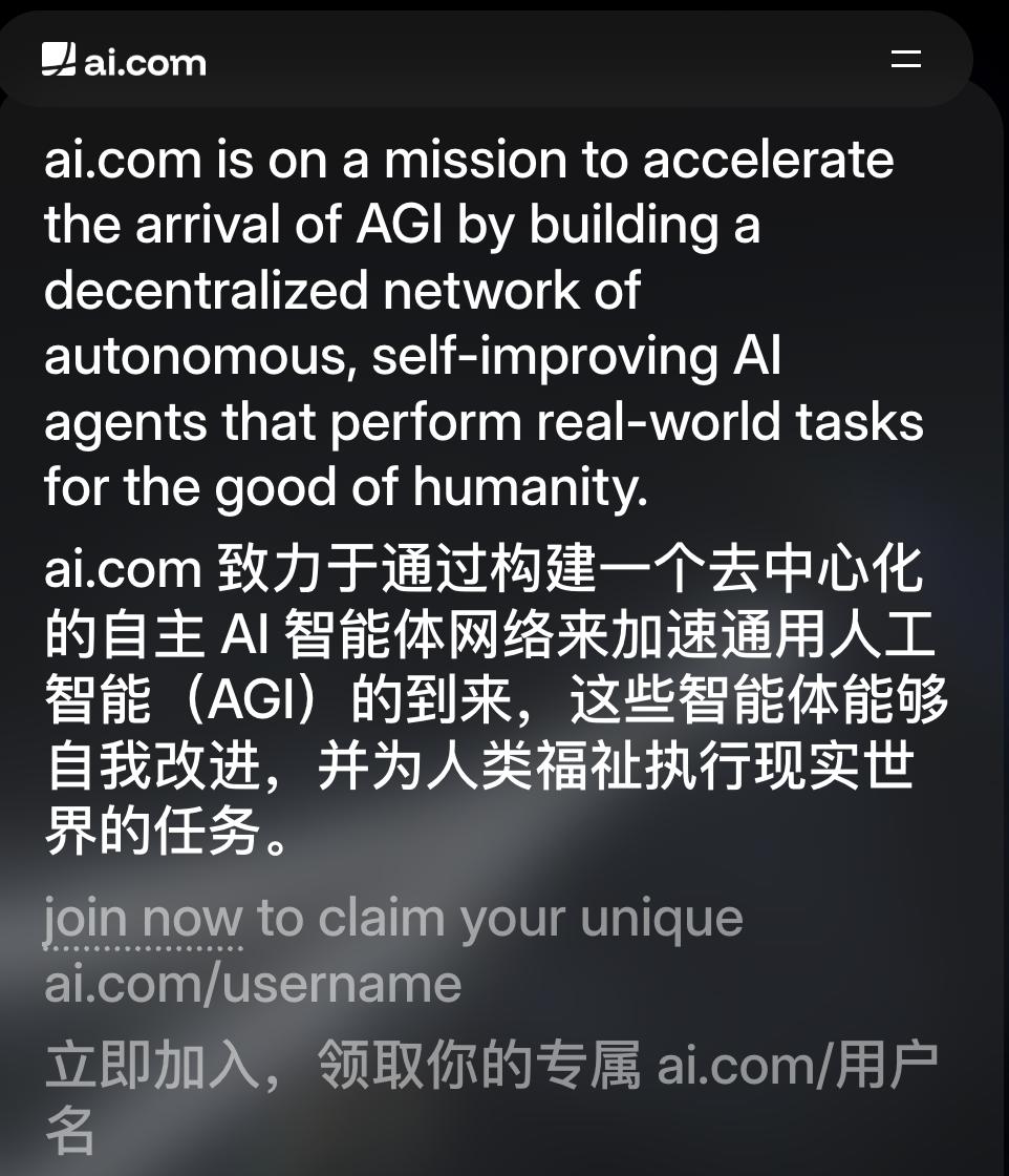 Marszalek亦是如此。在他看来,当AI成为水和电般的基础设施时,拥有「AI.com」就拥有了天然合法性与流量入口,相当于在AGI赛道核心位置插上了旗帜。