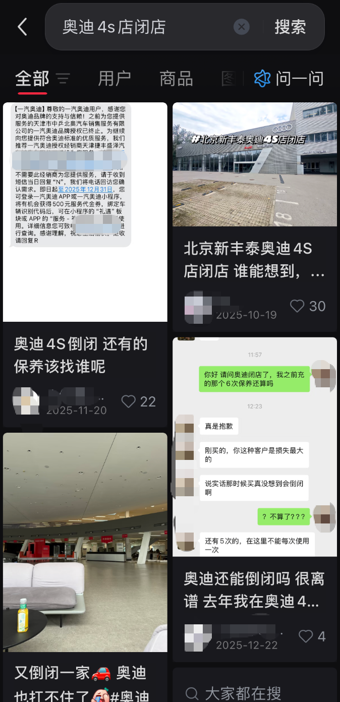 社交媒体平台上探讨奥迪4S店闭店帖子
