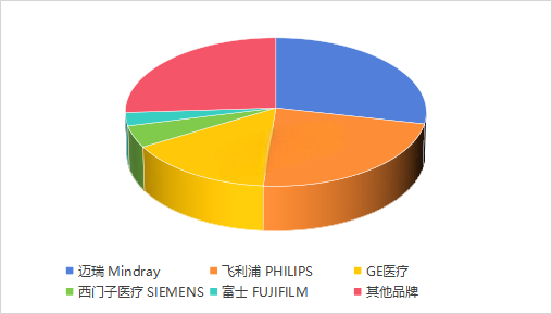 从超声影像诊断设备的中标品牌来看,迈瑞医疗、飞利浦医疗、GE医疗等品牌的市场份额较为领先,市场集中度CR3接近80%。