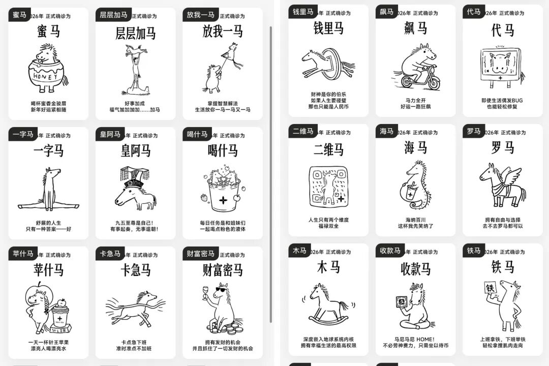 比如前几天,茉莉奶白上线的DIY杯贴功能,自带马年杯贴模板,诸如“层层加马”“财富密马”“收款马”“卡急马”等,谐音梗接地气又生动,网友直呼“太有活人感了”。