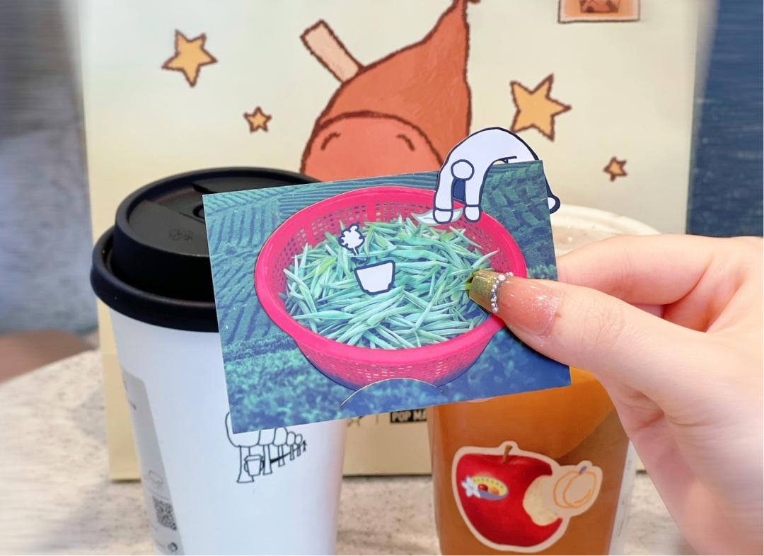 今年1月,喜茶英红·糯糯回归时附赠的可抽拉互动“采茶人卡”,被网友戏称为“无痛体验采茶”。