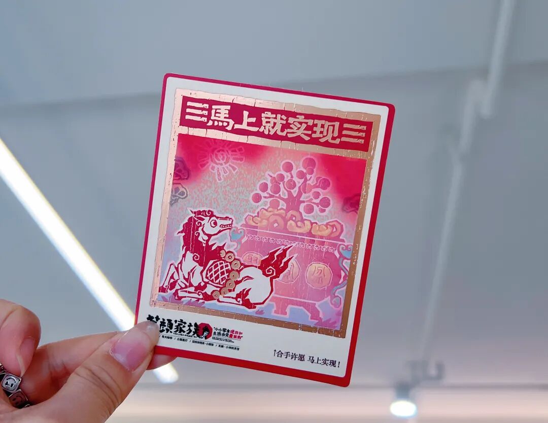 茶颜悦色马年明信片小卡,需要双手合十紧贴小卡,遇热即显出甲马图案,仿佛许愿成功,情绪价值拉满。