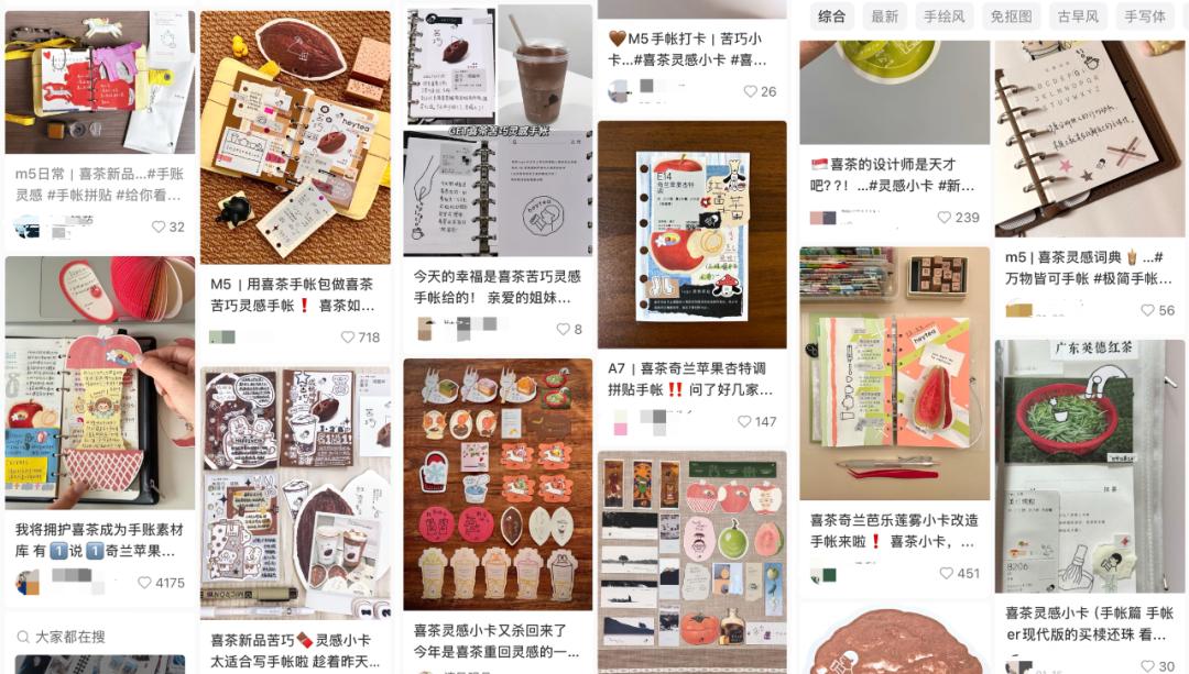 上线仅两天,“喜茶马思纯”“喜茶马年限定”等相关话题的浏览量就超过了200万;其中的灵感小卡更是成为不少手帐爱好者的心头好,在二手平台上单张售价达到6至15元。