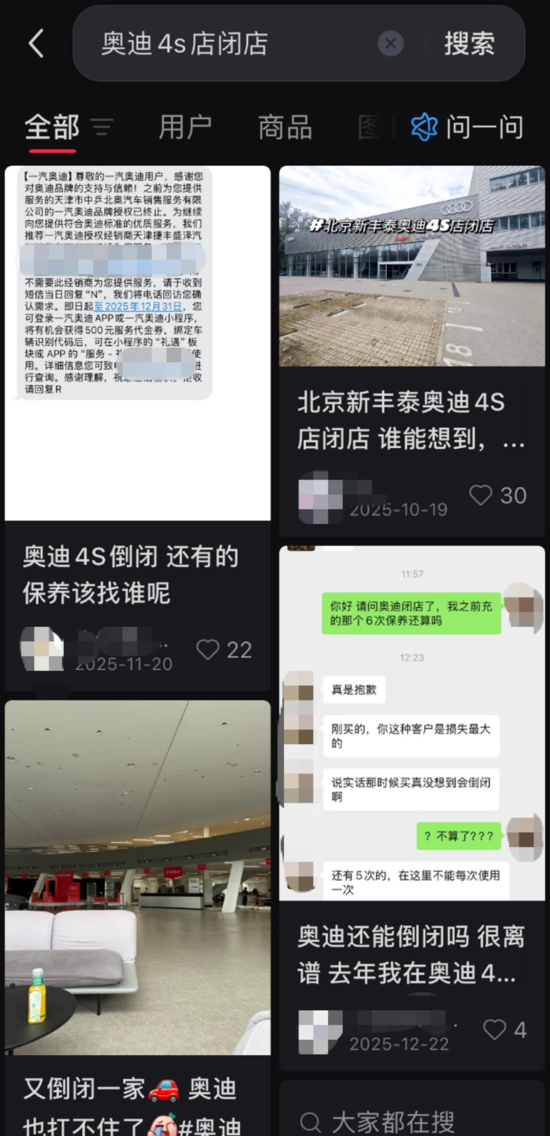社交媒体平台上探讨奥迪4S店闭店帖子