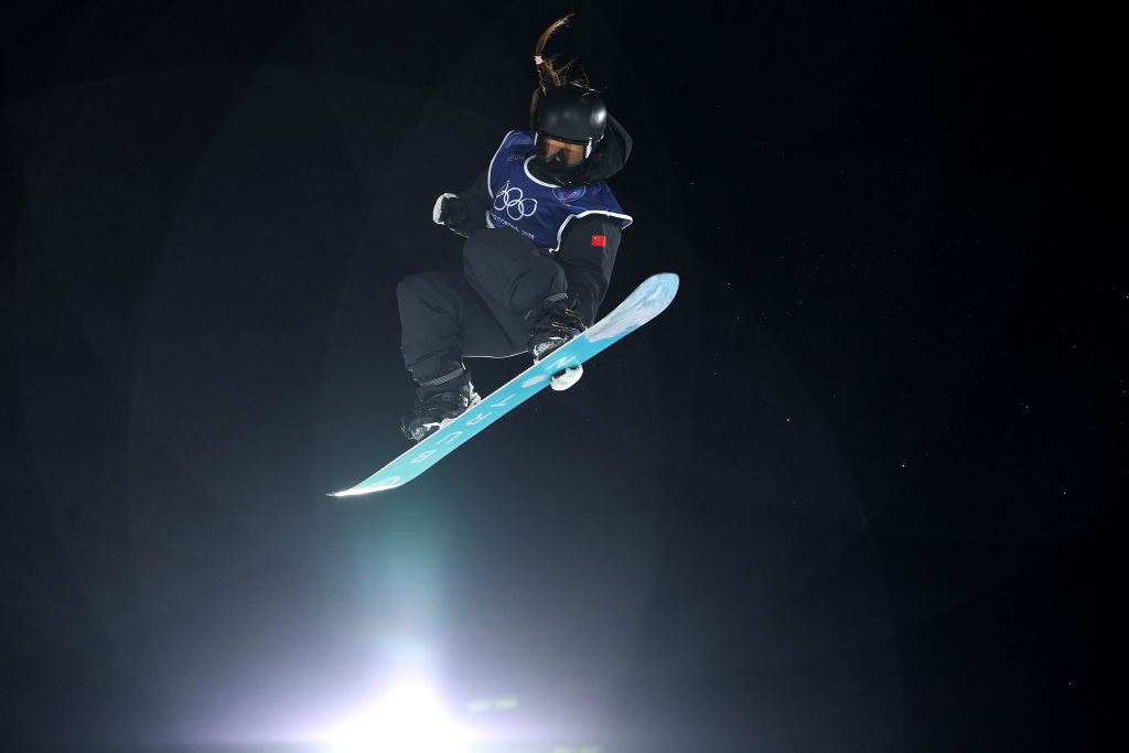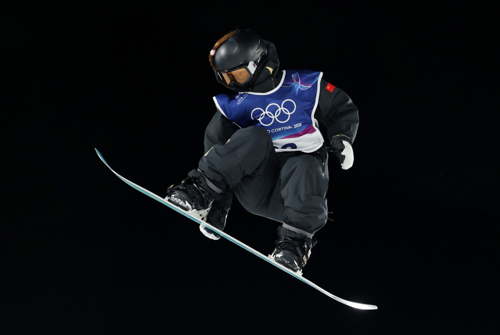 场边观战的中国男子单板滑雪名将苏翊鸣也为她鼓劲:“别哭了,你跳出这么好的动作,很棒了。”