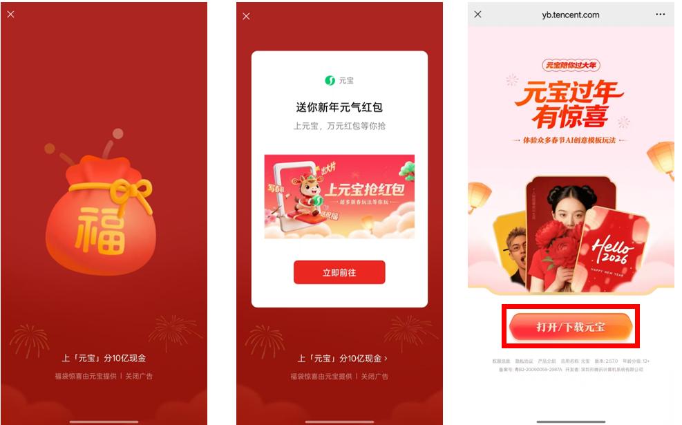 元宝借微信福袋导流测试 豆包官宣登春晚送科技好礼