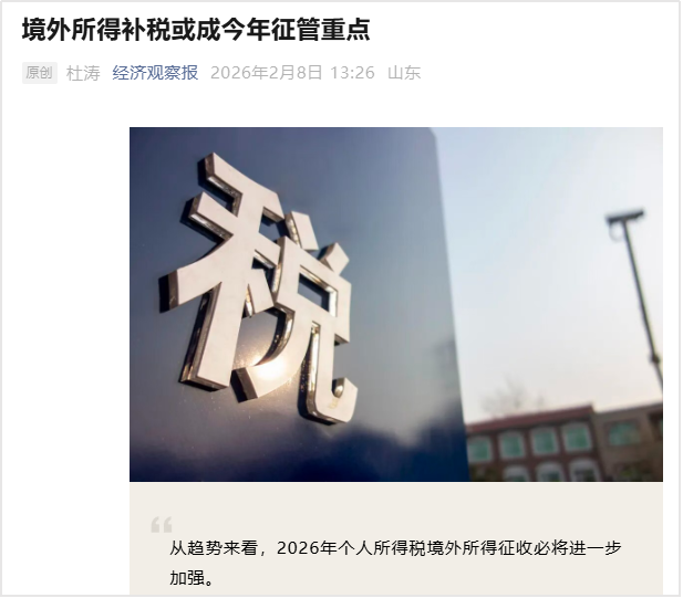 2月8日,有媒体报道称,2026年境外所得补税或将成为税收征管重点,消息引发社会广泛关注。