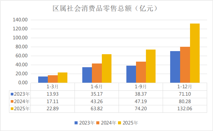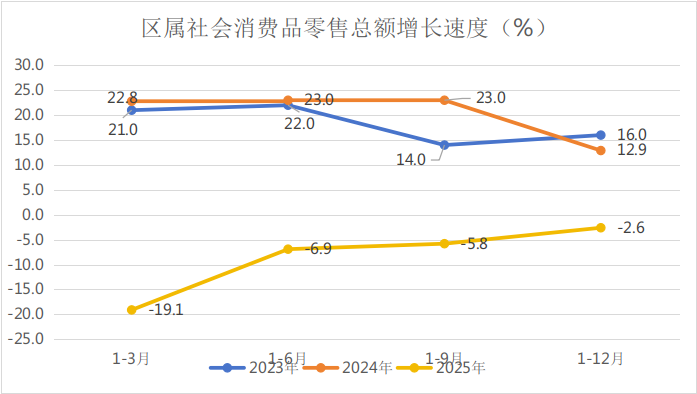 (一)区属层面,规模以上工业增加值同比增长5.8%,固定资产投资同比增长6.6%;区属社会消费品零售总额为132.06亿元,同比下降2.6%。
