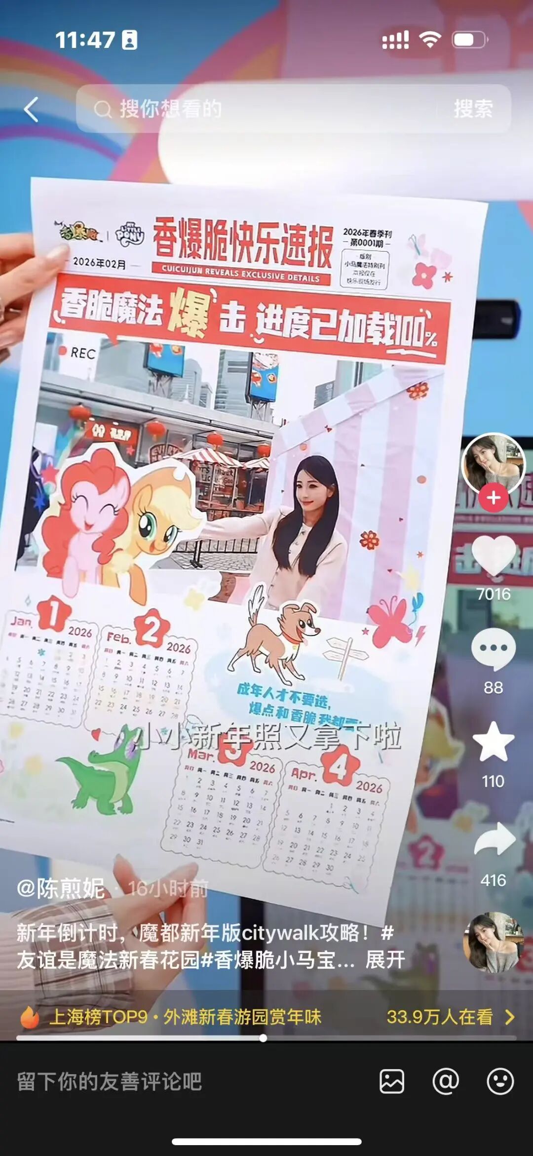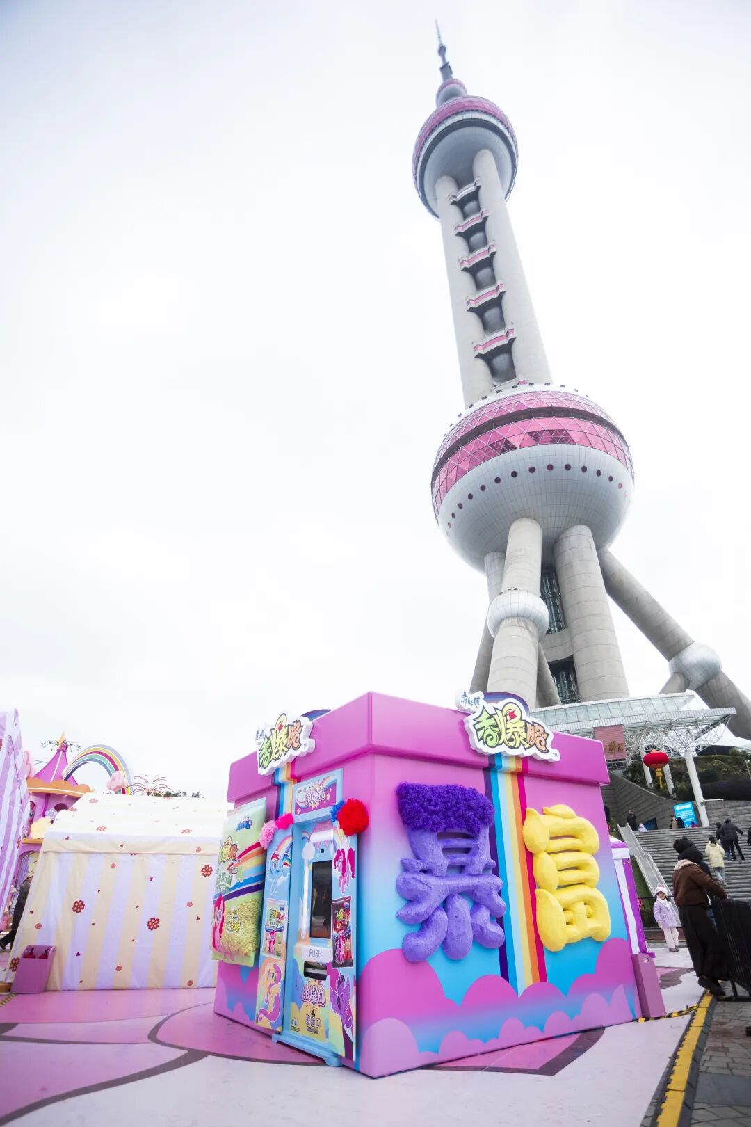针对快消春节营销“线上轰炸、线下缺位”或线下仅为曝光难转化的痛点,香爆脆与小马宝莉将线下重构为“IP+地标+沉浸式体验”三位一体的流量枢纽,以上海东方明珠为核心打造可复制的体验样板。2月4日至27日,二者在东方明珠下打造“小马宝莉友谊魔法新春花园”市集,紧扣“体验驱动转化”,摆脱单纯品牌秀场属性。