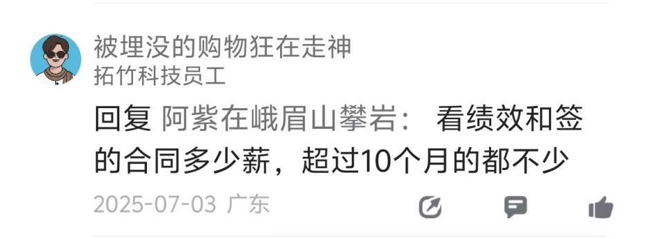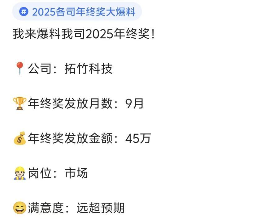 当时拓竹科技员工回应称,年终奖超过10个月的员工不在少数。