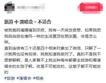 为劝退相亲对象,网友把旅游、看演唱会的精致照片置顶朋友圈:“置顶我自由自在的生活照后,三四个相亲对象加微信聊一次就没后续了。”