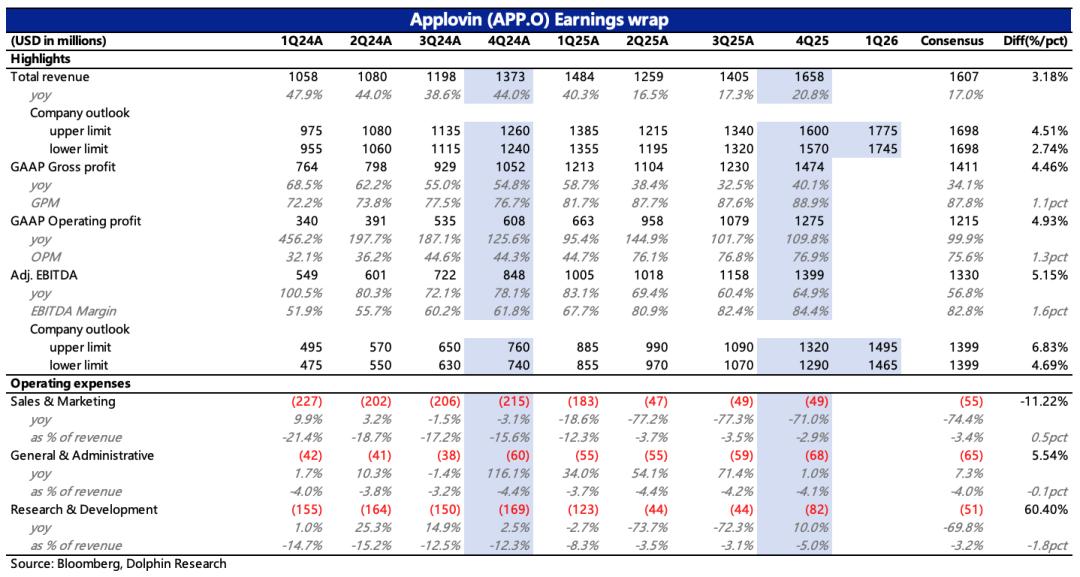 Applovin于美东时间2月11日美股盘后发布了2025年四季度财报。整体业绩尚可,尽管部分机构预期更为乐观,但实际情况与预期相对谨慎的买方视角较为接近。然而,这似乎并未阻止股价对财报呈现出负面反馈。
