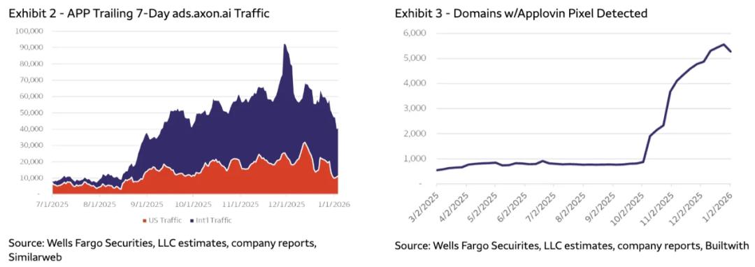 与Unity还能找出明显瑕疵不同,Applovin的业绩确实没有太多可挑剔的地方。尤其是在Applovin昨日已随Unity下跌、近期估值已被“鬼故事”击穿,且买方预期因开年第三方渠道跟踪的AXON Pixel商家域名数量净增放缓而调整的情况下,最终业绩表现仍未获资金认可。