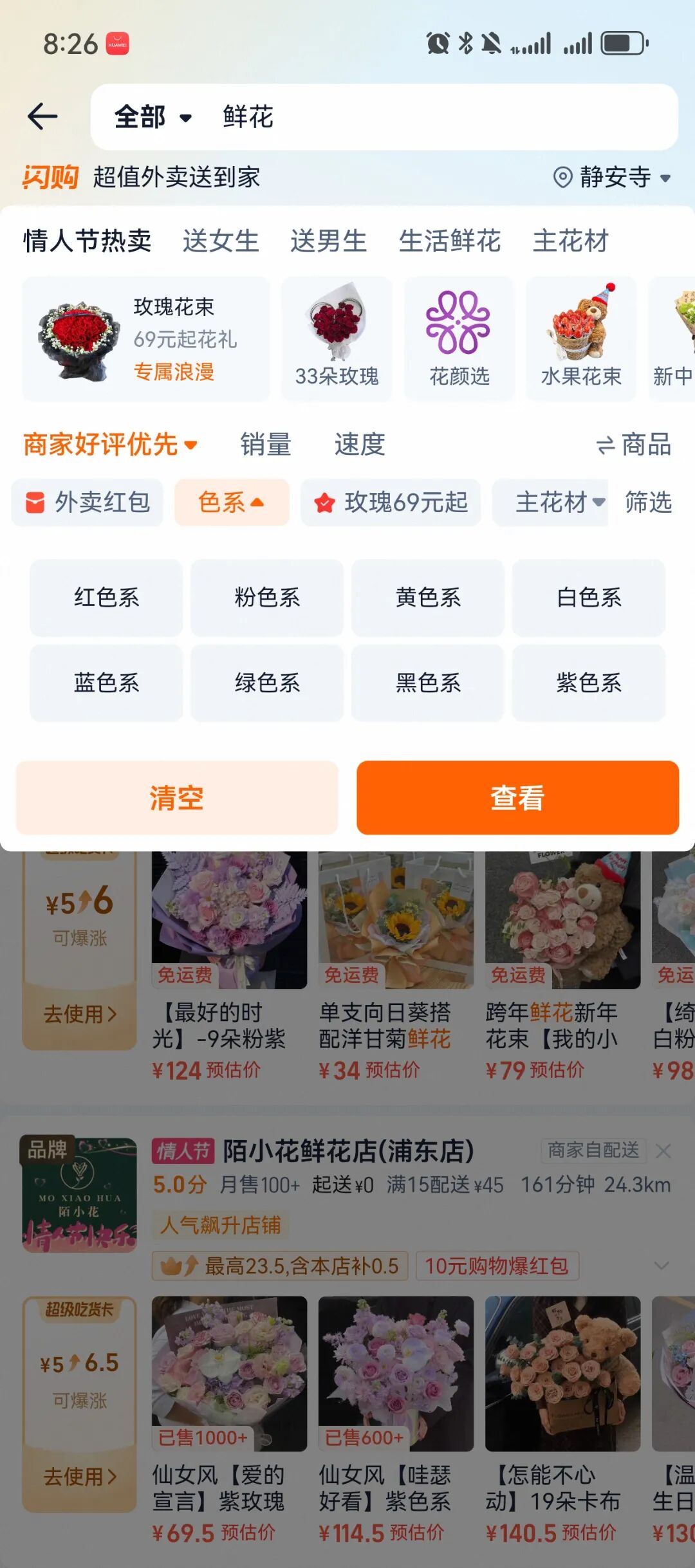 用户体验与转化提效:淘宝闪购升级礼品花频道搜索筛选模块,新增色系、朵数、主花材等结构化选项,帮助用户精准定位产品,还新增“玫瑰69元起”等价格指引模块,提升转化效率与客单价。