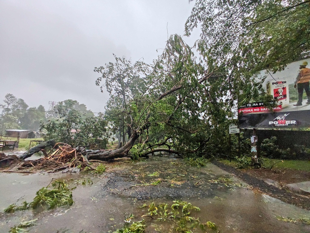 当地时间2026年2月11日,热带气旋“格扎尼”袭击马达加斯加图阿马西纳市,城市内大量树木被狂风刮倒。