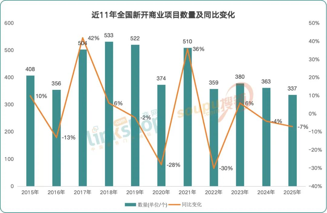 2025年全国新开业购物中心337个 创近11年最低纪录