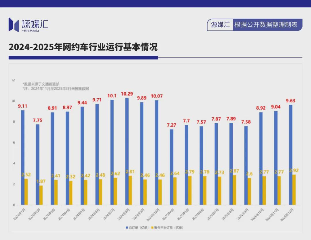 由于官方未披露部分月份订单数据,折算为月均值后趋势更直观:2024年月均订单9.424亿单,2025年为8.163亿单,同比下降约13.4%。