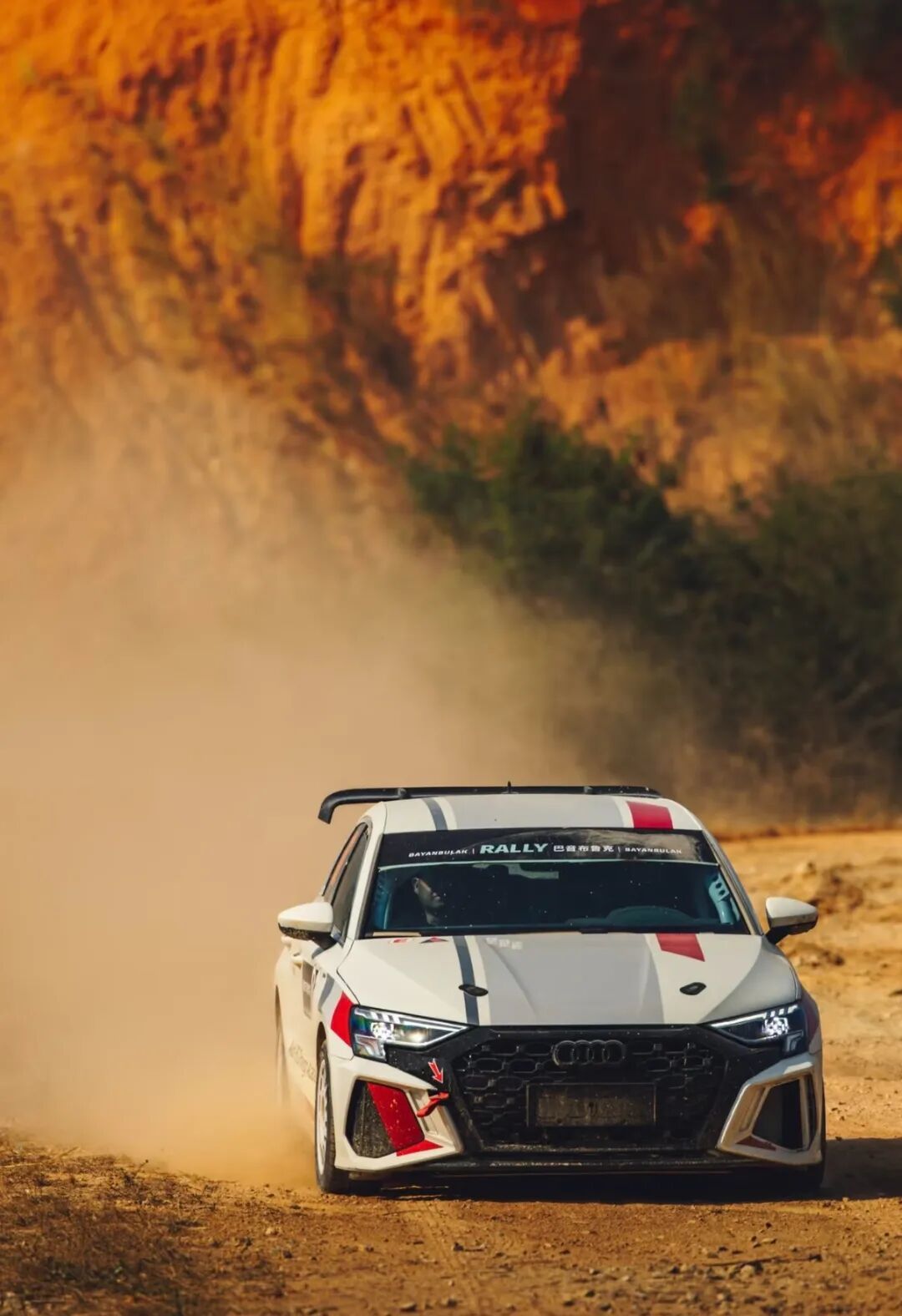 电影《飞驰人生2》中沈腾驾驶改装奥迪A3冲过终点