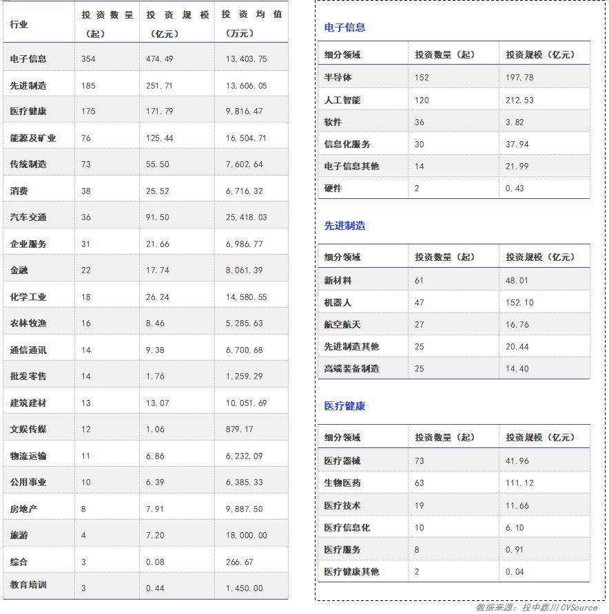 - 电子信息行业投资领先,半导体、人工智能细分领域交易均破百起