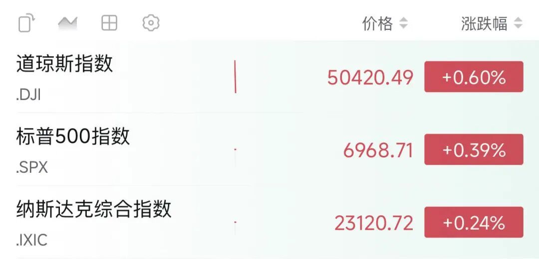 当地时间2月12日(周四),美股三大股指同步高开,截至发稿,道琼斯工业平均指数上涨0.6%,标准普尔500指数上涨0.39%,纳斯达克综合指数上涨0.24%。